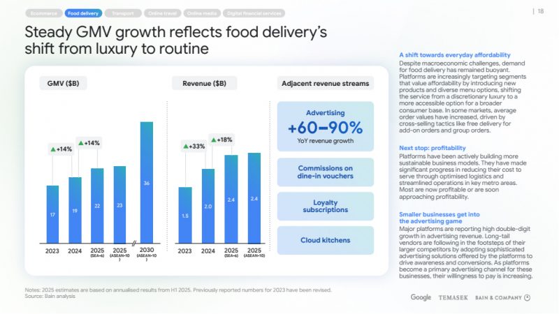 – Bất chấp những thách thức kinh tế vĩ mô, nhu cầu giao đồ ăn vẫn rất sôi động. Các nền tảng ngày càng nhắm đến các phân khúc coi trọng khả năng chi trả bằng cách giới thiệu các sản phẩm mới và đa dạng hóa thực đơn, chuyển dịch vụ từ một dịch vụ xa xỉ tùy ý sang một lựa chọn dễ tiếp cận hơn cho cơ sở người tiêu dùng rộng lớn hơn. Tại một số thị trường, giá trị đơn hàng trung bình (AOV) đã tăng lên, nhờ các chiến thuật bán chéo như giao hàng miễn phí cho các đơn hàng bổ sung và đơn hàng theo nhóm.