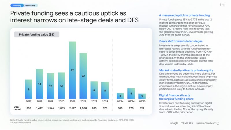 – DFS hút vốn: Lĩnh vực dịch vụ tài chính số (DFS) tiếp tục thu hút phần lớn vốn, chiếm 45–50% tổng giá trị giao dịch.