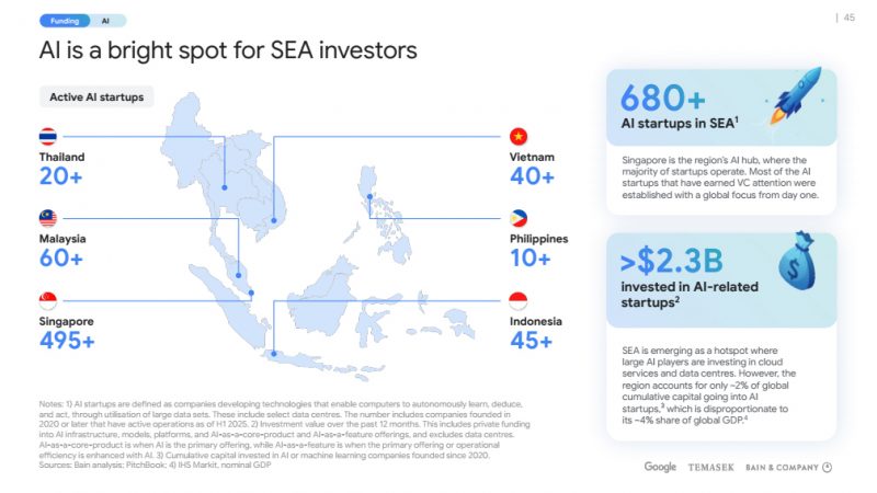 – Tâm điểm Singapore: Hiện có khoảng 700 startups liên quan đến A.I đang hoạt động tại SEA, với Singapore là trung tâm khu vực với hơn 495 startups.