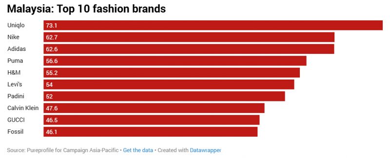 BẢNG XẾP HẠNG CÁI THƯƠNG HIỆU THỜI TRANG THEO TỪNG THỊ TRƯỜNG